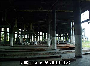 機関庫は蒸気機関車の収容・管理を行うだけでなく、水や燃料その他物資などの補給や中継地として重要な役割を持っていた。そのため戦時中には格好の標的になり、米軍戦闘機の機銃掃射を受けている。多くの資料に「明り取り窓付近にその弾痕を残す」とあるのだが、私が探してみた限りでは見つけることができなかった。