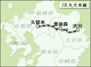 久大本線は明治39年に、大分県玖珠郡会にて「(福岡県)久留米、大分間に鉄道を」と提案された。しかし、請願書を提出しに上京すると、時の鉄道院総裁後藤新平は「あの山の中に鉄道は必要ない。君らはサルでも乗せる気か」と言ったという。今なら大問題になるだろうが、昔の話とはいえ酷い話だ。それでも根気よく鉄道敷設の陳情は続けられ、大正8年に衆議院を満場一致で通過し、貴族院本会議も可決された。それによって鉄道省は大正11年に、大分〜湯平を結ぶ大湯鉄道を買収し、これを基礎として久大線の建設を開始する。部分的に鉄道が開通していく中、豊後森駅が開業したのは昭和4年の12月のことだ。豊後森駅は当時の森町に作られたので駅名は「森駅」でもいいはずだが、すでに函館本線でこの名称が使用されていた為、旧国名を頭につけて「豊後森駅」となった。昭和9年の12月に天瀬〜日田間が開通し、久留米から大分市までが全線開通することになり、現在の久大本線が完成された。