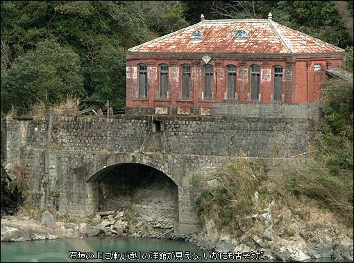 結論を言うと、この建物は旧西日本製紙株式会社のもので、2kmほど南にあった同社の製紙工場付属の水力発電所である。西日本製紙株式会社は昭和63年に解散しており、現在は工場跡地から発電施設など全て日本製紙株式会社の所有になっている。この坂本村においての製紙工場の歴史は長く、まだ肥薩線も無かった(八代-人吉間は明治41年開通)ころの明治28年に肥後製紙株式会社としてスタートしている。その後、この地の製紙工場は何度も合併・吸収などにより社名を変えるが昭和63年の西日本製紙で幕を落とす。この辺の詳細は報告書の「旧西日本製紙工場跡地」でレポートしているのでそちらをはじめに読んでいただきたい。