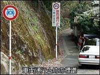 地図では国道219号線に対し球磨川を挟んでJR肥薩線と県道158号線が並んでいるように見えるが、まず、この県道がクセモノ。ご覧のように車両通行止めになっている。仕方ないので車を停めて歩いて進むと踏み切りに出る。道は川沿いを通るようだが線路はトンネルを通る。歩き進むと発電所の屋根が見えてきた。線路も先ほどのトンネルを出ているようだ。途中こんな標識もあった。なんなんだこの県道は…。