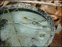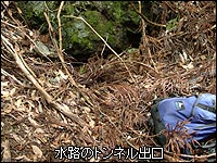 写真でデイバックが写っているが比較して小さな穴がお分かりいただけるだろう。内部もほとんど埋れている。しかし地形図通りに水路跡がトンネルを使っていることが分かったので少し安心した。