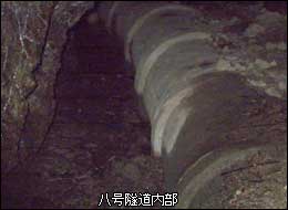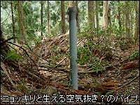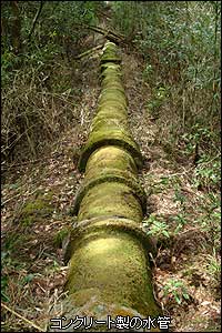 なんとコンクリート製の水道管ではないか。直径はおよそ60cmくらいであろうか。見事に苔むして緑のパイプとなり、森の中へ延びていた。私はずっと上部が開放された水路をイメージしていたが、実際はコンクリート製の水管だったのだ。水管だとB地点周辺の景色も取水口周辺に水路がなかったのも納得できる。