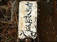「平坦じゃなかったなあ」なんて思いながら稜線を越えて下っていると左手に平らな場所が見えてきた。そう水路跡だ!その水路跡が山の斜面へ繋がる部分に…あった!トンネルだ!しかしその規模はトンネルと呼ぶにはかなり小さく、まさしく「水路の穴」だ。