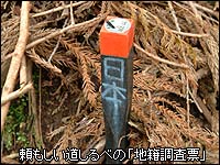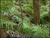 午前11時40分にB地点到着。乗ってきたバイクを道路と水路が交わるスペースに停めた。靴紐を締めなおしてサージタンクへ向けて水路跡を歩き始める。しばらくは倒木こそ多少あるものの藪もなく非常に平坦で歩きやすい。地図では約300mほどで一つ目のトンネルに到達する。足元は登山道のような踏み跡が続いてはいるが非常に不明瞭な部分もあり、相変わらず水路の遺構などは見あたらない。手元のGPSではひとつ目のトンネルの地点に到達した。しかし水路もトンネルも見あたらない。「ひょっとして全て埋め戻されたのか?」とも考えたが、こんな山中ではそんなことする意味もないだろう。冷静になって自分が立っている弱々しい踏み後の続く先を見てみる。今までほとんど水平を保っていた道が突然20mほどある稜線へ向かって登っていた。GPSと手元の地形図、実際の周りの地形を見比べると水路は目の前の斜面を突っ切っているのは明らかだ。少しだけ予測はしていたが「トンネル」は水路であって人が通れる代物ではないようだ。方角が一致しているので踏み跡にしたがって稜線へ登った。