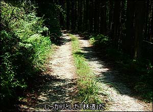 地図によれば林道が鴨猪川を渡ると、まもなく右後に分かれて伸びる軌道跡があるはずだ。ところが実際はこのようにハッキリとした「車道」として分かれており、周辺には特に迷うような痕跡もない。「あれれ?こっち側は林道化されているのか?」と思いながらも合流部からスタートだ。角上橋周辺の分岐点の状況から、こちら側の合流部も“藪化”した入口だとばかり思っていたので少々拍子抜だ。