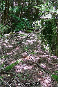 前回の調査で、運良く最深部への入口を発見した。そのときのGPSデータをカシミールで国土地理院1/25000地形図上にプロットしてみたが、最深部へと向かう軌道跡に間違いないようである。今回の調査は、その入口から鴨猪谷支線の終点を目指すルートをとる。1/25000地形図に実線で記されている軌道跡は、入口から終点までおよそ2kmほど。地形的にも尾根に近いため、谷もそれほど深くなく、第3回調査みたいに怖い思いもしなくていいようだ。