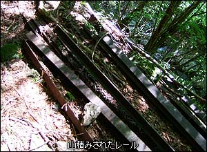 中には枕木も一緒にレールにくっ付いて空中を渡っており、なんだか「銀河鉄道999」というアニメを思い出してしまった。ここで一つ発見。いままで軌道跡で“ゴミ”を見ることはなかったが、今回は一升瓶を何度が見かけた。一本きれいな状態で落ちていたり、また割れている状態のものもあったが、山で働いていた男達が飲んだものなのだろうか。