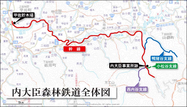 熊本県上益城郡山都町(旧矢部町)から砥用町を通り、甲佐町まで鉄道が走っていたことをどれくらいの人が知っているだろうか。私はオフロードバイクでの林道ツーリングも10数年来の趣味であるので、九州中の林道は結構走って回った。そのなかでも特にお気に入りの林道が、九州最長の規模を誇る「内大臣林道」である。熊本県山都町から県境の椎矢峠を越え、宮崎県椎葉村に抜けるおよそ42kmの未舗装の林道だ。いつだったか、内大臣林道には昔トロッコが通っていたという話を聞いたことがあったが、そのときは全く興味もそそられず忘れていた。が、今年になってヨッキれん氏が運営する「山さ行がねが」というサイトに出会ってしまい、運良く?悪く?(笑)完全に森林鉄道跡の探索の魅力に取り付かれてしまったのである。そこでトロッコの話を思い出し、軽い気持ちで「内大臣のトロッコ」について調査を開始した。