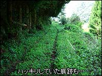 A地点で県道153号と軌道跡が交わる。進行方向右手には内大臣林道へと登っていく軌道の痕跡がわずかに確認はできるが、植林された杉林の斜面となり不明瞭になる。目的の内大臣橋下へは進行方向逆の左手へ入る。