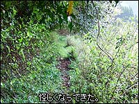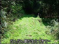 トンネルを抜けると右手の緑川との間に畑の跡が広がる。現在は耕作している様子もなく、雑草が元気に新芽を吹いていた。本ページの1枚目の内大臣橋の写真は、トンネルを抜けしばらく進んだC地点から撮影したものだ。軌道跡はD地点に近づくにしたがってだんだんと“道”から“草地”へと変化していき、着実に“藪”へと近づいていた。しかし、軌道跡の山側に連なる石垣などは残っていて、その痕跡は迷うことなく楽に追える。