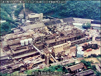 この地は昭和63年に解散した「西日本製紙株式会社」跡である。この製紙会社というか、この製紙工場の歴史は明治から始まるが、会社としての沿革はとても複雑であり興味深いものであった。