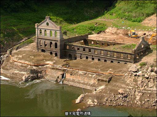 この曽木発電所遺構の存在を知ったのは最近のことだ。熊本県坂本村の深水発電所で、思いのほか満足できる調査が行えた私は「水力発電所だったら山間部に古いものが結構残っているのではないか」と考えた。そこでWeb上で古い発電所に関する情報を検索してみると、あっさりと「曽木発電所遺構」に辿り着いたのだった。その時も同じような写真を見たが、その遺跡というに相応しい姿に一瞬にして魅了された。さらに面白いのはその特異な姿や環境だけでなく、「曽木発電所」が持つ歴史だ。その歴史も調べつつ、まずは現地調査だ。3月末に現地へ行くことが出来たが、水没している姿を写真撮影しただけで終わった。今回の報告書に使用している写真は、6月のダム湖の水位が下がったときを狙って撮影しに行ったものだ。