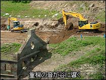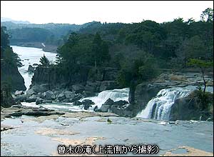 鹿児島県大口市に流れる川内川には、東洋のナイアガラとも言われる「曽木の滝」がある。高さは12mほどだが幅は200m以上にもなり、水量も多く迫力のある瀑布を見ることができる。曽木発電所遺構は、「曽木の滝」下流の約1.5kmの川内川北岸に位置している。さらに約8.5km下流には鶴田ダムがあり、そのダム湖によって曽木発電所遺構は1年の大半を水に浸かることになる(左写真の左奥に見えるのがダム湖)。発電所遺構の対岸は公園としてきれいに整備されており、遺構全体が見渡せることができる高台には案内パネルが用意された展望所が作ってある。